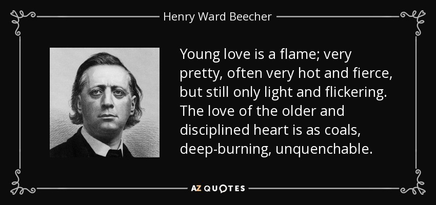 “Young love is a beautiful fire, diligent, hot, hot, but still light and daydreaming. Old love and a disciplined heart are like deep, unquenchable coal.”