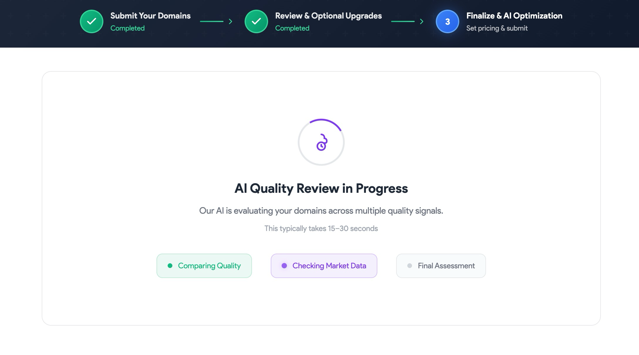 When you add a domain, we will run a real-time assessment and highlight which ones qualify for immediate premium approval.